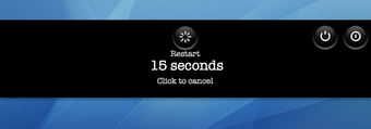 EZSwitchをインストール後、メニューバーにEZSwitchアイコンが表示されます。アイコンをクリックすると、上から「Sleep(スリープ)」「Shutdowsn(システム終了)」「Restart(再起動)」ボタンが表示されます。ボタンは大きくて押しやすく、分かりやすいです。ボタンをクリックするとカウントダウンが始まり、画面上の「Click to cancel」をクリックすると操作をキャンセルすることができます。また、画面右に表示されるボタンで簡単に操作を切り替えられます。